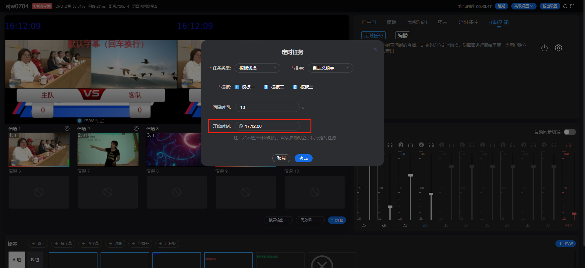 5.点击开启按钮,即可开启定时切换任务,任务过程中无法切换信源,如需切换,请先终止任务。