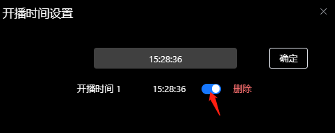 点击开关按钮,红色时钟开始开播倒计时,一次仅可开启一个,不用时可删除