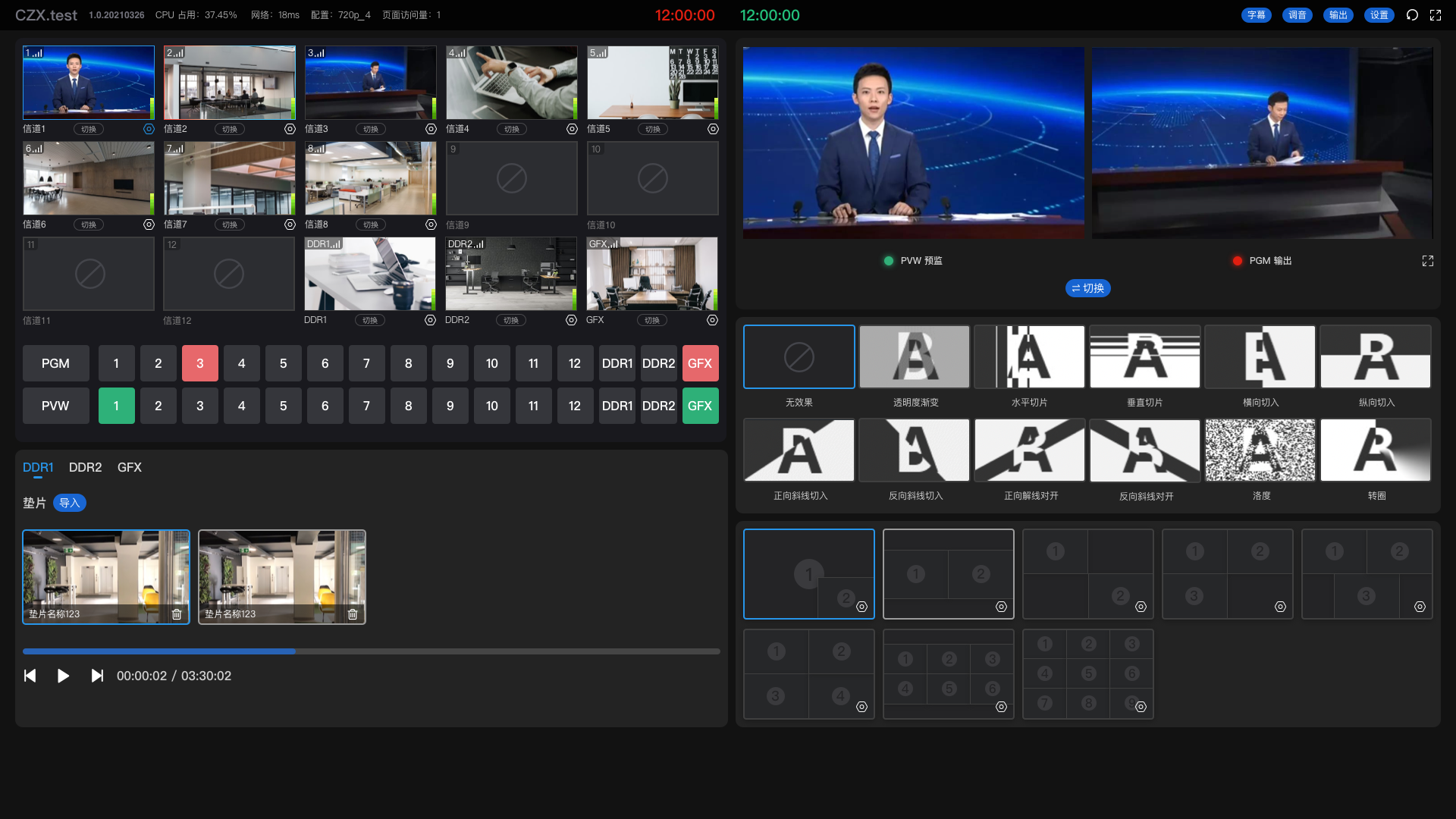 每当开启一个导播台,系统会自动开启2个DDR和1个GFX作为备选