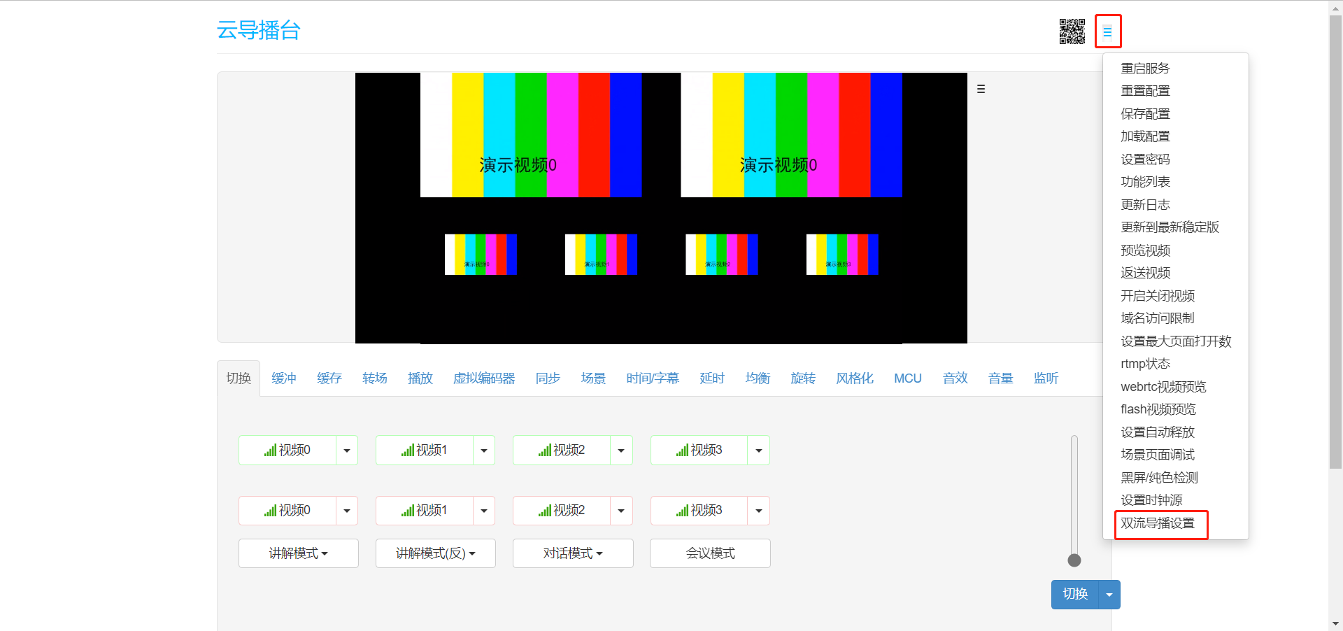 打开多人协作导播后台点击右上角——选择双流导播设置配置拉流和拉流地址拉流地址获取:是中传公网的lps流地址,新建一个信源 ,然后信源页面的发布地址就是可以拉流的地址启用输出在多人协作导播台输入极速流拉流地址:拉极速流作者:shangjun 创建时间:2022-09-15 10:53最后编辑:shangjun 更新时间:2023-08-18 17:26
